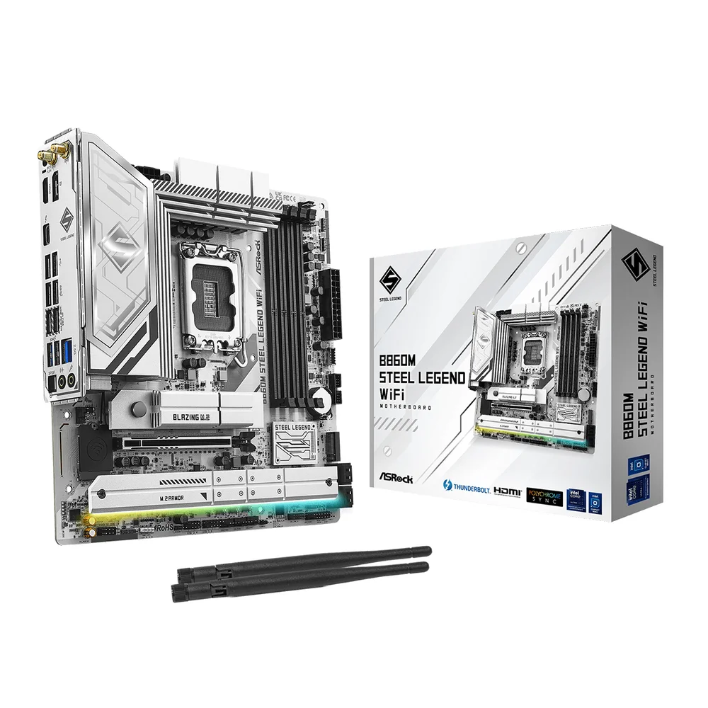 Mainboard ASRock B860M Steel Legend WiFi DDR5 là dòng bo mạch chủ thế hệ mới được thiết kế dành cho người dùng phổ thông, game thủ và nhà sáng tạo nội dung muốn sở hữu nền tảng hiệu năng cao với mức giá tối ưu. Với chipset Intel B860 mới, hỗ trợ CPU Intel Core Ultra (Series 2) cùng loạt công nghệ hiện đại như PCIe 5.0, WiFi 6E, Thunderbolt 4/USB4, DDR5 tốc độ cao và thiết kế VRM 12+1+1+1+1 mạnh mẽ, sản phẩm mang lại hiệu suất vượt trội trong tầm giá.